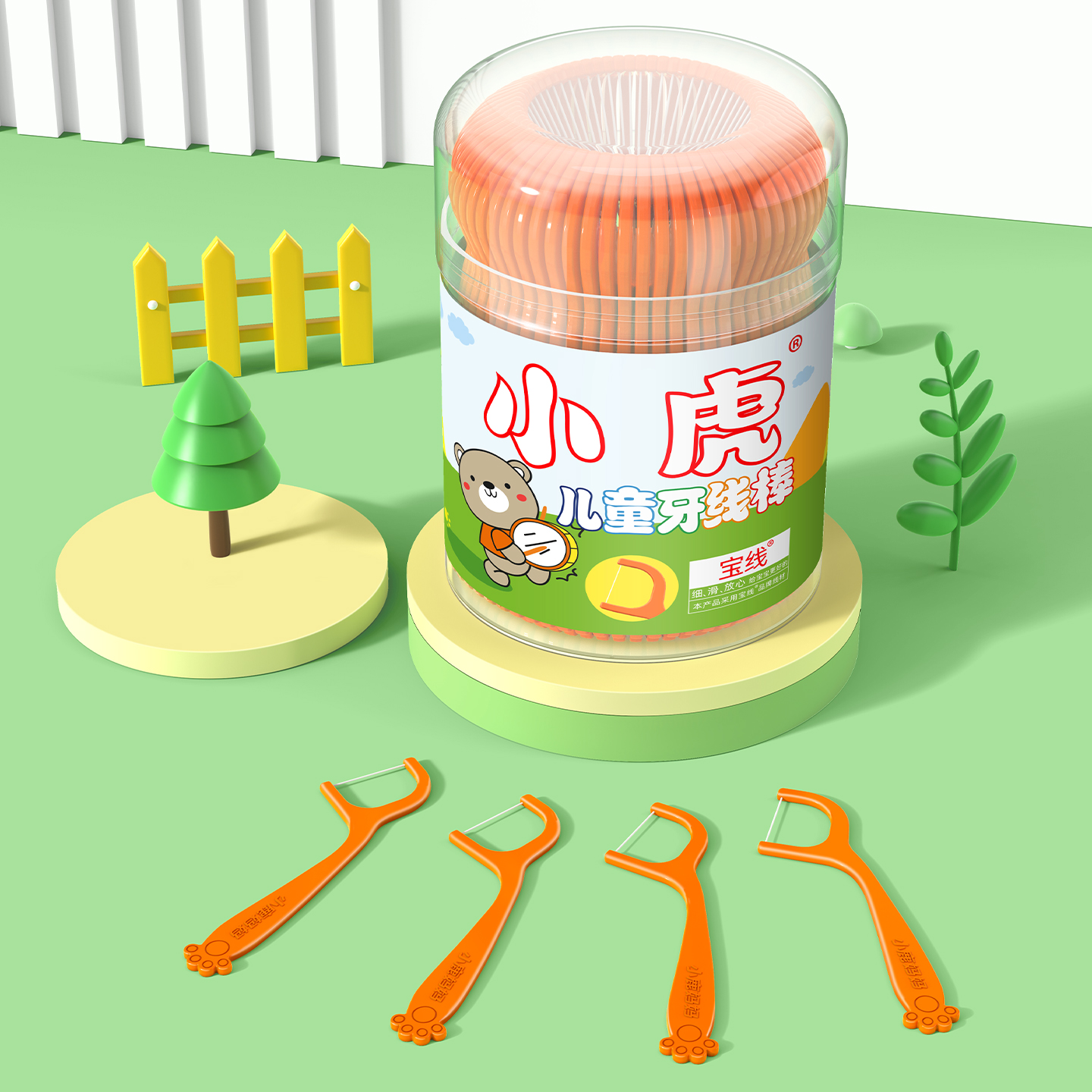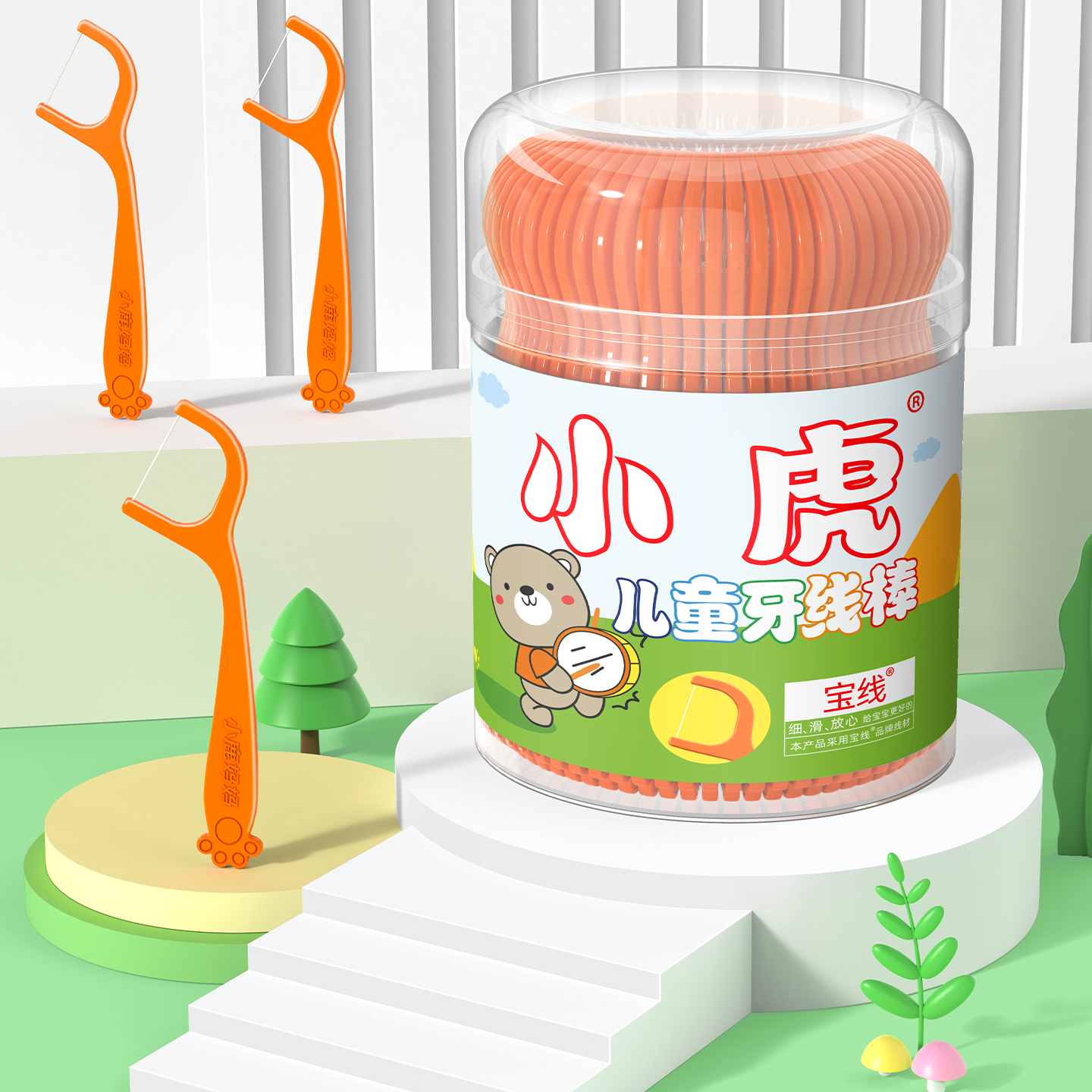 小熊儿童牙线棒50支_桶装
