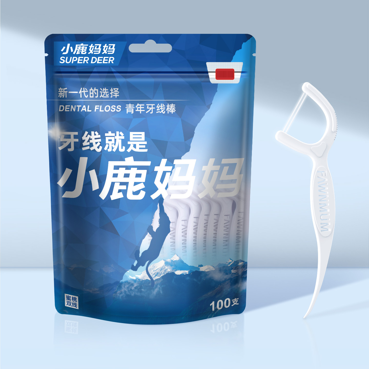 小鹿 青年牙线双线 100支袋装 蜜桃味